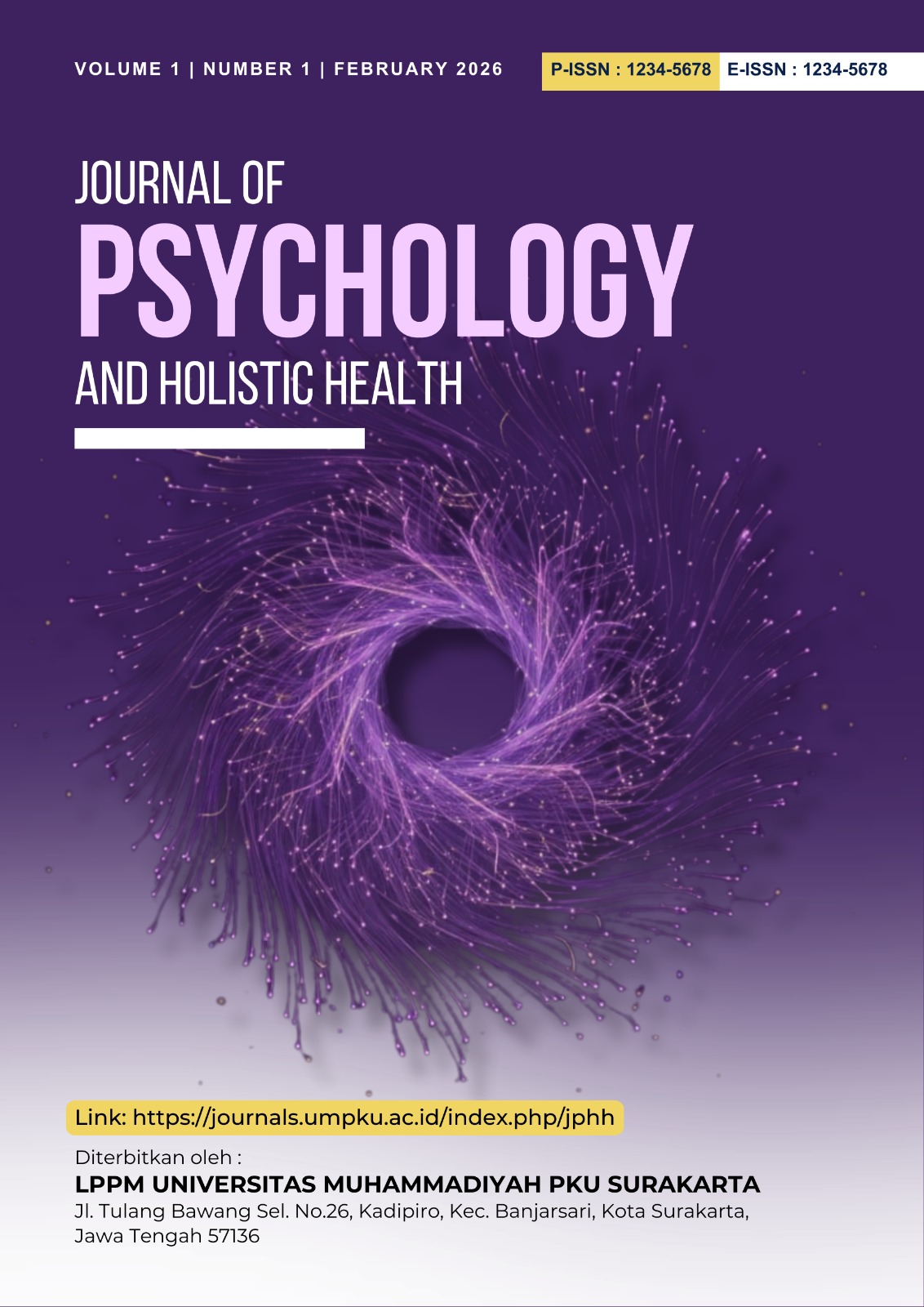 Journal of Psychology and Holistic Health adalah jurnal ilmiah peer-reviewed yang terbit setiap Februari dan Agustus. Jurnal ini mempublikasikan riset lintas bidang mulai dari psikologi klinis, neuropsikologi, pendidikan, perkembangan, industri dan organisasi, sosial, kognitif, forensik, kesehatan holistik, hingga integrasi teknologi dengan psikologis manusia. Melalui inklusivitas metode, kami menerima laporan kasus, penelitian empiris kuantitatif, kualitatif, eksperimental, mixed methods, dan multimethod. Kami juga mengakomodasi kajian teoretis, pengembangan instrumen psikometri, studi literatur, serta netnografi guna menyajikan kontribusi komprehensif bagi keilmuan psikologi dan kualitas hidup manusia secara holistik.